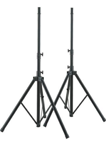Sturdy yet light weight aluminum speaker stand in a 2 pack. 1 3/8" upper tube with adapter for 1 1/2" speaker mounts. Wide base for stability. Height adjustable from 42" to 71".